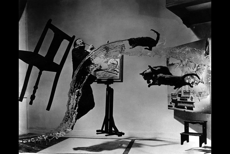 In the decades ahead, Halsman and Dali would “play” together at least once a year — “an elating game,”Halsman wrote in 1972, “creating images that did not exist, except in our imaginations. Whenever I needed a striking protagonist for one of my wild ideas, Dali would graciously oblige. Whenever Dali thought of a photograph so strange that it seemed impossible to produce, I tried to find a solution.”